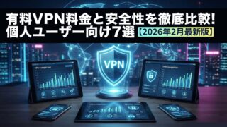 【2026年2月最新】有料VPN7選を料金と安全性で徹底比較!コスパ最強のSurfshark(月額300-400円)、バランス重視のNordVPN(10台接続対応)、日本語サポート充実のMillenVPNなど、個人ユーザー向けおすすめVPNを詳しく解説。無料VPNの危険性、同時接続台数、セキュリティ監査実績まで完全ガイド。30日間返金保証で安心お試し可能。
